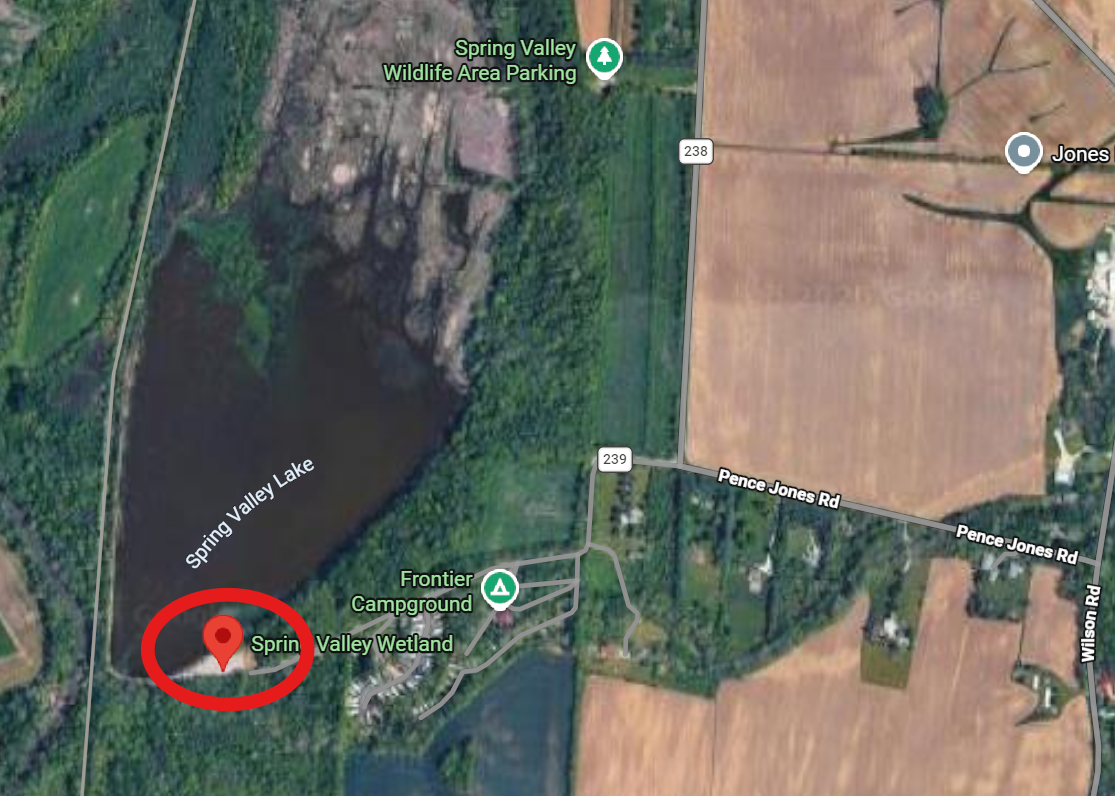 Spring Valley Wildlife Area is an 842-acre wildlife area situated in the gently rolling agricultural region of southwest Ohio just east of the Little Miami River, eight miles south of Xenia and four miles north of Waynesville. More than one-third of the area is cropland and permanent meadow; one-third is woods; the rest is 150-acre wetland marsh and lake. More than 100,000 trees and shrubs have been planted to provide permanent wildlife cover. The wetland complex with its open water and marshy areas includes a large number of unusual birds (more than 230 species), plants and animals. There is a 2.5-mile observation trail that circles the marsh, along with a 655 feet boardwalk into the marsh ending in a 13-foot-tall observation tower.